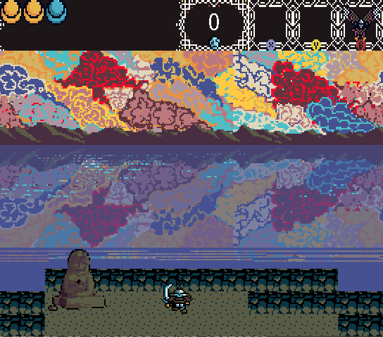 It feels good to rest after a long day of work, whether saving a rain-cursed world or making a video game…what do you think of the pixel sky?